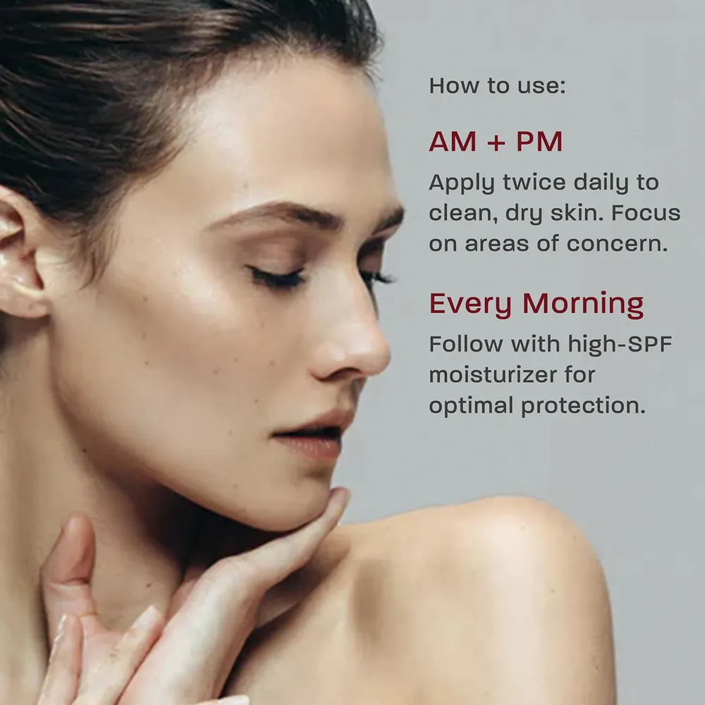 • Apply morning and evening to cleansed face, neck, and décolleté.